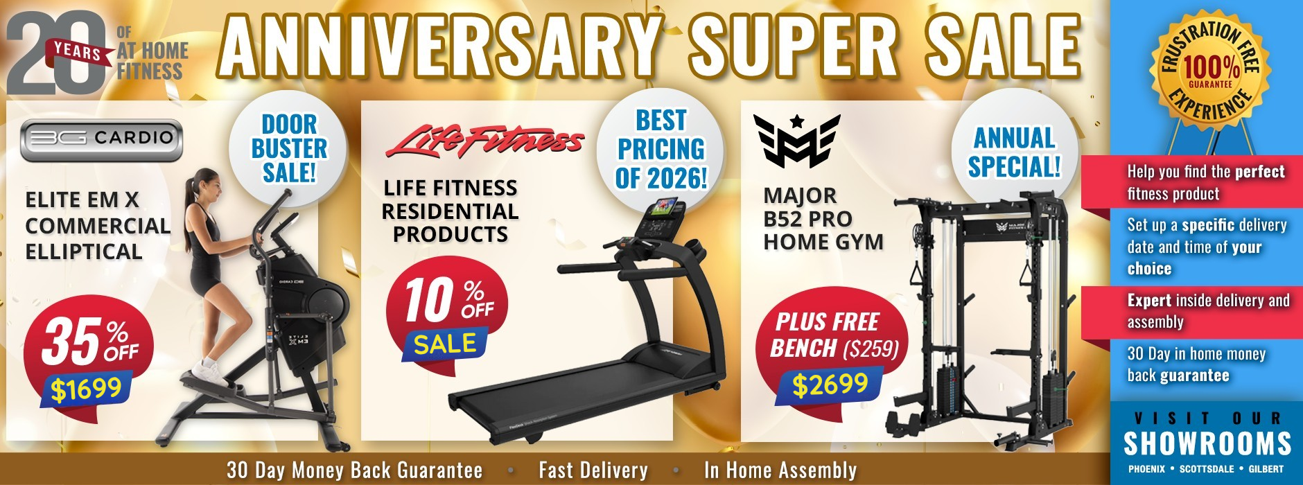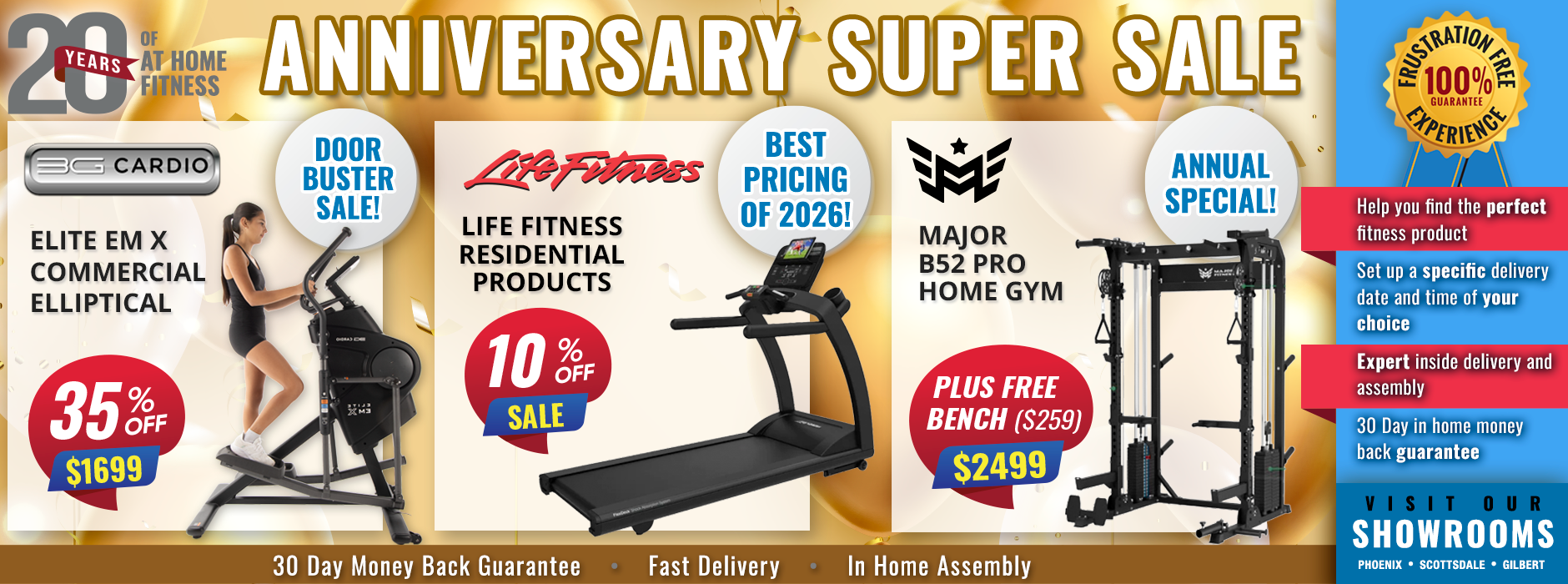 Thanks to our commitment to providing the best equipment at the lowest prices possible, AtHomeFitness.com has earned a reputation for being the top fitness retailer in Arizona. In fact, residents from Scottsdale, Chandler, Gilbert and Phoenix have long trusted our brick and mortar stores for all of their fitness equipment needs.
